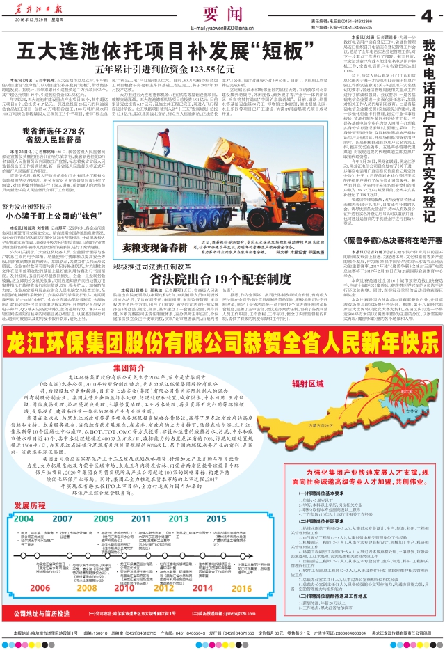 龙江环保集团股份有限公司恭贺全省人民新年快乐