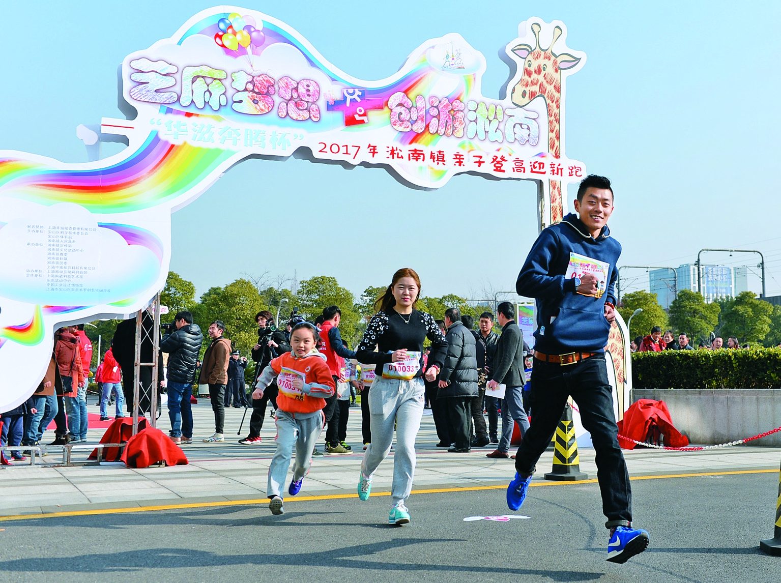 2016年12月31日,上市民在宝山区淞南镇参加“亲子登高迎新跑”活动,以运动的方式迎接2017年的到来。新华社发