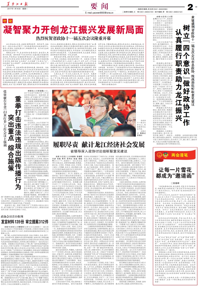 树立“四个意识”做好政协工作认真履行职责助力龙江振兴