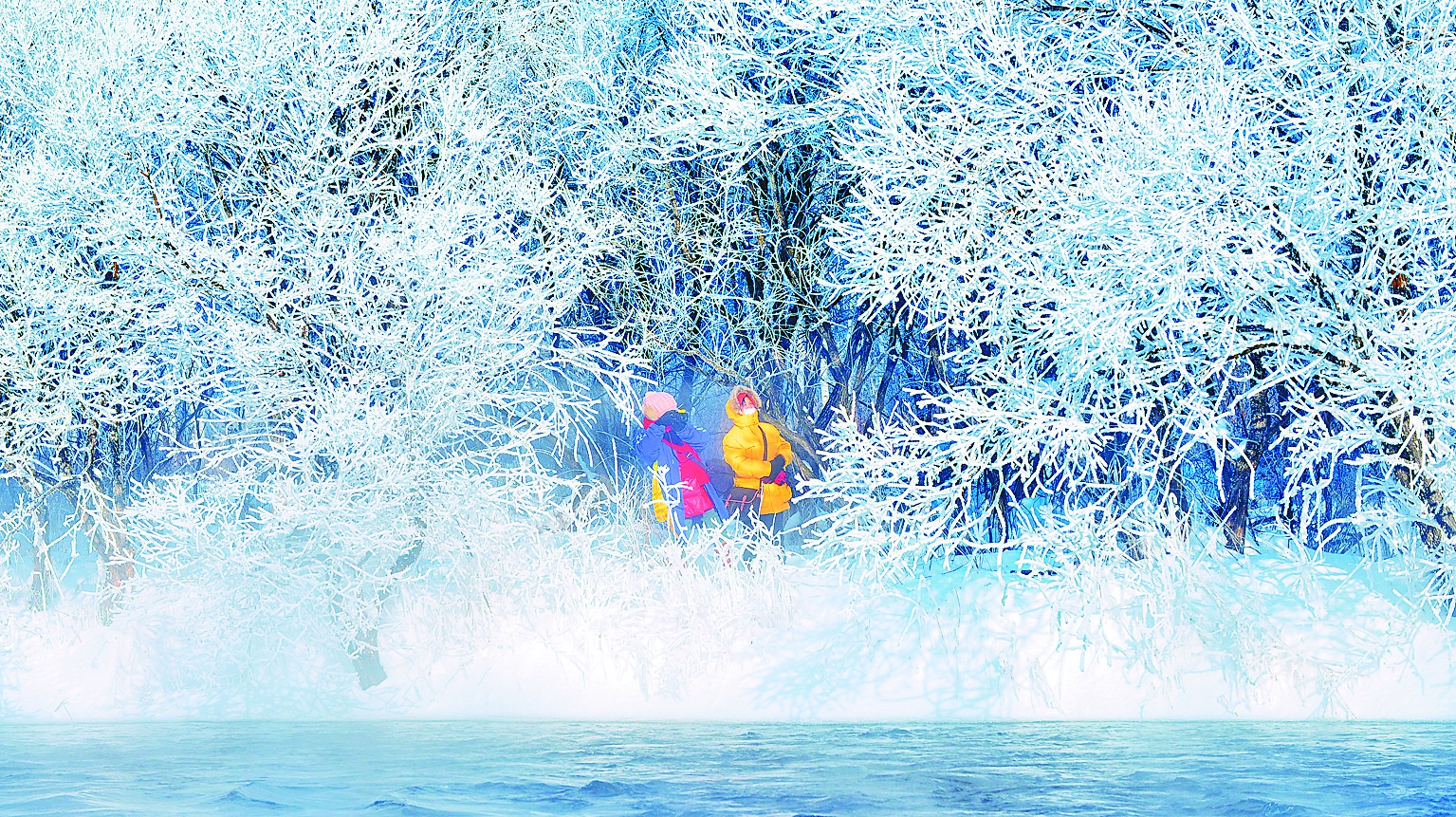 隆冬时节,许多摄影爱好者争相来到伊春市红星区大平台村拍摄雾凇美景。因库尔滨水电站长年发电,库尔滨河绵延十几里不冻,两岸树木枝条凝雪挂霜,形成了雾凇奇观,人们犹如进入了一个晶莹剔透的童话世界。 本报记者高明摄