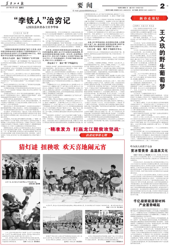 □本报记者马云霄 他曾是全县最年轻的后备干部,却毅然选择了扶贫岗位,一干就是13年,如今成了最年长的正科级干部。 13年来,他帮助县里的53个贫困村发展经济,全县贫困人口由2002年的8万人锐减到2016年底的6045人,贫困人口人均收入由2002年的580元增加到10160元。 他就是绥滨县扶贫办主任李华林,当地老百姓深情地称他“李铁人”。 “贫困村村级发展互助资金”运行10年来,全县村级互助资金协会已由最初2个发展到现在的41个;运行资金也由当初87.2万元猛增到4980万元。现在每年平均为贫困户办理贷款2650户—— 摸着石头过河 他让“草根银行”打样全国 “多亏了‘草根银行’,要不咱哪能脱了贫!”绥滨县向日村66岁的刘永全深有感触,以前家里穷,想干啥没本钱,日子过得紧巴巴的。 刘永全说的“草根银行”,就是2006年设立的“贫困村村级发展互助资金”,经过十年的发展,在李华林的手里运转成了百姓心中的“草根银行”。连续两年刘永全得到了互助金的帮助,脱了贫。 绥滨县13.5万人,其中贫困人口有6.4万,脱贫任务艰巨。2006年,绥滨成为全国互助资金试点县,这让想致富又缺资金的农民看到了希望。 新事物的出现难免会让人们心存疑虑。“我们入股,成本收不回来咋办?”“会不会搞非法集资?”“自己的钱被村干部花了咋办?”…… 面对众多质疑的目光,作为“操刀人”李华林并没有退缩。他坚信,只要能让农民脱贫再难他也要试。 为消除农民困惑,李华林带领县扶贫办的同事们在试点村驻村,在一个个农家院子里架起小黑板,图文并茂、简单明了地给群众答疑解惑。 在绥滨县办事大厅,有专门的互助资金服务窗口,很专业、把关严,农民把钱放这儿放心。随着试点经验不断推广,绥滨县越来越多的农民接受了自己的“草根银行”。 所谓互助资金,就是财政投入一定扶贫资金,与农户自有资金放在一起,由农民自己管、自己用,在协会内滚动使用。农户发展生产需要资金,可以通过协会借款,到期归还本息;不用钱的农户,年终可获得利息。 得到农民认可,李华林开始琢磨了,农民把互助金看成了脱贫致富的希望,不能让农民伤心。如何让互助金健康长久运行?李华林带领他的兄弟们研究出了“四权分离”管理机制。 在实践中,李华林总结出一套办法:互助小组资金使用权与管理权分离;互助协会资金管理权与使用权分离;政府部门监管权与管理权分离,当协会资本金少于50%时,启动退出机制。 没有规矩,不成方圆,新机制像给互助金戴上了“紧箍”,绥滨县严格执行“五不准”制度:不准行政命令,坚持农民自愿;不准吸储,入会会员股金与扶贫资金1∶1限额;不准出村,互助金只能在村内使用;不准高息,只能用于发展生产,借款费率最高不得超过1分;不准个人或集体非法占有财政扶贫资金。 保障资金安全,县里设立互助资金总协会,各试点村设分会,总协会及时指导、服务、监督。各村按照“组借组还,整借整还,一年一还”模式管理,村民向村小组长申请借款,然后小组向互助协会借款、还款,村组成员相互担保、共担风险。这样不仅简化了手续,也为村民“自己睁大眼睛看好自己的钱”提供了保障。 探索扶贫新机制。在向日村和联合村,全体会员协商,利用200万元互助金集中购置种子、化肥等农资,提高了议价能力,一次性节省生产成本20万元,其他村屯看到好处纷纷效仿。 有了互助资金,农民自办的各种“小生意”如雨后春笋般涌现,一些“能人”的产业逐步成长壮大起来。 李华林深有感触地说:“贫困户脱贫需要一个过程,互助资金是依靠基层组织建立起来的,是一种长效扶贫机制和精准扶贫手段,具有很强的生命力,为造血式扶贫探索了一条新路。” 近年来,在财政专项扶贫资金的支持帮助下,他们把肉鹅养殖、屠宰、加工作为加快农业结构调整、带动农民脱贫致富的重大举措。2016年,全县养殖大鹅80万只,其中567户建档立卡贫困户养殖大鹅18.8万只,4个月的养殖期内,平均每户增收9000余元,带动1572人实现脱贫—— 撸起袖子干 他让“鹅”声响遍村屯 “要想富,找对路”,绥滨是国家级贫困县,李华林深知脱贫任务任重而道远。他们举全县之力,脱贫攻关。“各炒一盘菜,凑成一桌席”,这是李华林说的最多的一句话。 绥滨县土生土长的李华林深知,绥滨拥有两江一河,泡泽密布,水草丰茂,适于养鹅水面达18万亩,养鹅成为“自然性”选择;而且也有传统养鹅基础。几十年来,全县农村几乎家家养鹅,积累了丰富经验,养鹅成为“习惯性”选择;自2011年绥滨县实施“水田开发”战略以来,粮食产量纯增9亿斤,迫切需要尽快调整农业生产结构和转变农民增收方式,养鹅成为“预期性”选择。 一只鹅雏成本为7.5元,县财政补贴4元,饲养期120天,平均成本36元,成鹅每只按7斤、每斤按8元计算,售价56元,利润20元,养鹅成为“经济性”选择;由于养鹅周期短,见效快,性价比高,能够出收入富贫困户、出利润富加工企业、出就业富企业职工、出税收富地方财政,出综合效益富民强县,因此成为农民脱贫、财政增收的主导性选择。 经过研判,李华林大胆建言:大鹅养殖加工业“性价比高”,必须作为支柱产业来培育。 有了思路,开始大手笔谋划,绥滨在全省建立了一个唯一的国有资产产业化项目,借力省三产融合资金,投资2100万元,建成了肉鹅屠宰厂,年屠宰能力200万只;投资1500万元,建成熟食加工厂,年加工