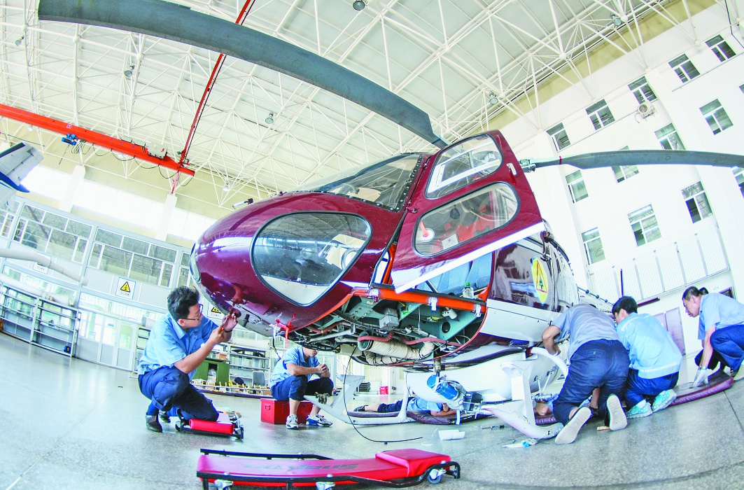 哈飞直升机生产中。 本报记者刘心杨摄