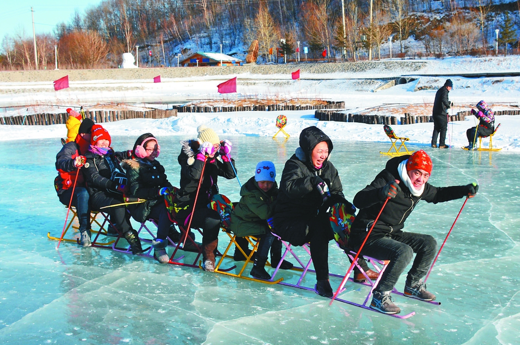 游客们在“美丽青山冰雪乐园”尽情游玩。 陈洁飞摄