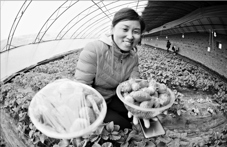 近日,室外乍暖还寒,而哈尔滨市王岗镇兴隆村的草莓温室大棚内,却一片春意盎然。长成的大草莓娇滴滴地挂在翠绿枝头,等待游客的采摘。据悉,进入3月份,兴隆村的温室大棚内种植的草莓相继成熟,哈市市民可品尝到首茬1000多斤的草莓。