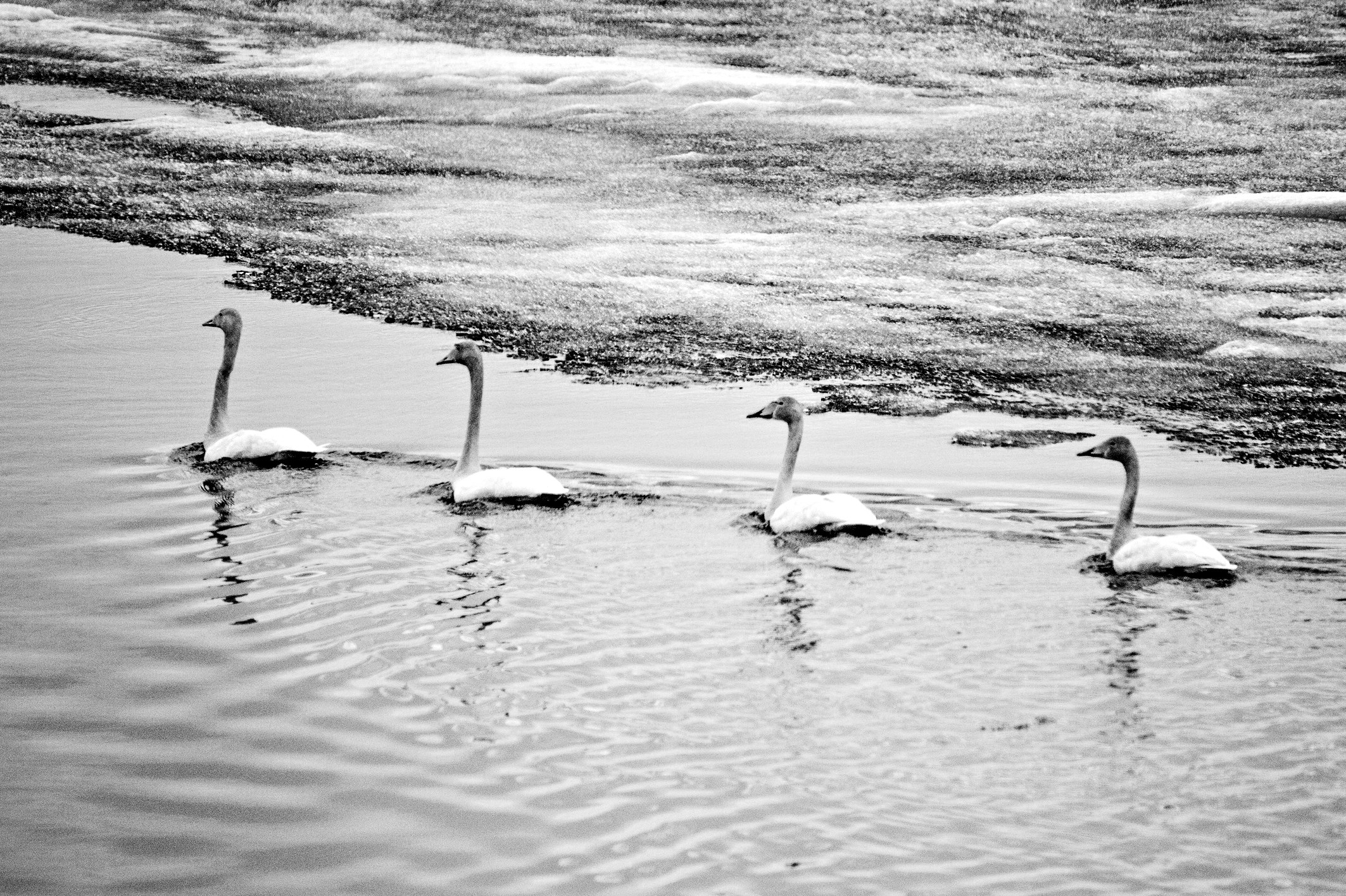 春天,又到候鸟回归时。我省垦区江滨农场回归候鸟有苍鹭、白鹭等10余种,而今多年不见的天鹅又来了。随着水环境的改善,江滨农场向阳干渠黑龙江入江口成为各种珍稀候鸟的栖息地。图为美丽的天鹅在冰雪融化的江中栖息。 张建军本报记者吴树江摄