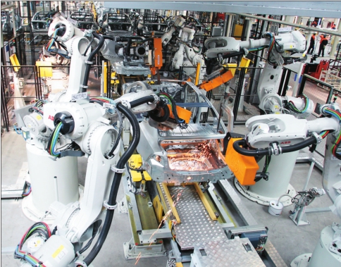 大庆沃尔沃汽车制造有限公司生产车间一角。