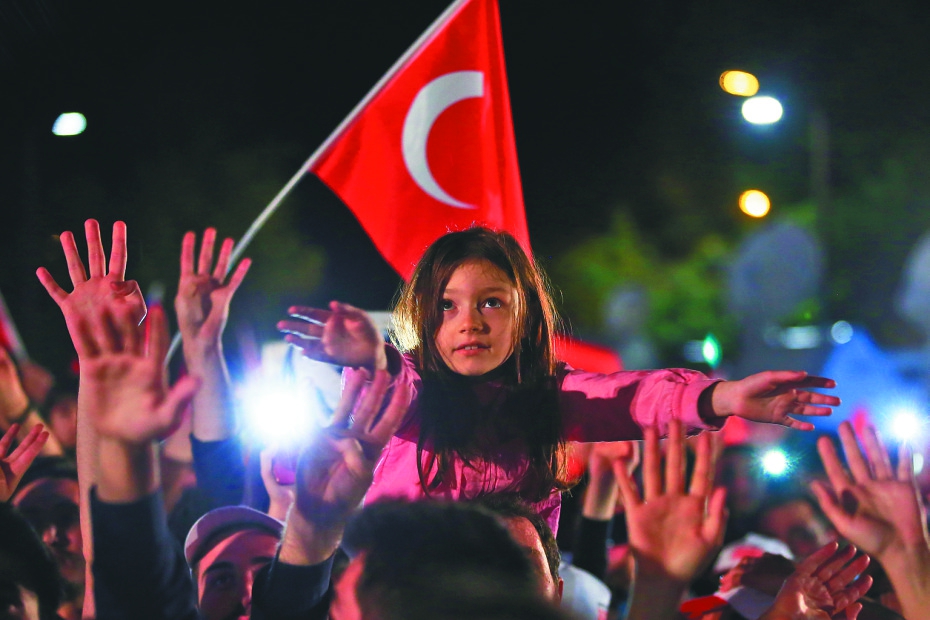 4月16日,在土耳其伊斯坦布尔,一名女孩参加修宪支持者的街头庆祝活动。 土耳其总统埃尔多安16日夜间宣布,执政党正义与发展党和支持者力推的修宪草案在当天举行的全民公投中获得通过。修宪支持者走上街头庆祝,反对党表示公投存在不当行为,要求重新统计部分选票。 新华社发