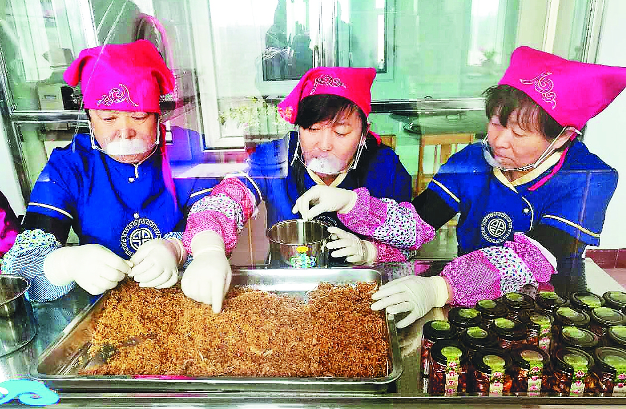 □文/摄杨启坤本报记者刘晓云 4月6日,饶河县四排赫哲族乡首家鱼产品加工企业——黑龙江赫乡食品有限公司正式运营。180平方米的公司展厅内,鱼毛、鱼肉干、鲤鱼罐头特色鱼排等十多种鱼产品展示在前来购买的游客面前。 在村里的鱼毛加工厂里,四排村妇女主任黄维玲带着村里的姐妹们正在紧张地忙碌着,为加工今年第一批开江鱼做准备。2016年,黄维玲带领10名妇女,每人1000元钱集资入股,成立赫香四排鱼业加工坊,是以制作鱼毛、鱼罐头、秘制酱豆为主的家庭式作坊。在村民黄举家的院内搭起两口大锅,用赫哲族传统的技艺将乌苏里江鱼加工出首批鱼毛和鱼罐头,并一炮打响。今年,她们注册了“额涅尼塔斯恨乌鲁卓”(赫哲语:妈妈的鱼毛作坊)商标,统一制作标准、统一产品包装、统一销售价格。 四排村是赫哲族村,其独特的赫哲文化、习俗一直是旅游亮点。“第一书记”朱大鹏驻村之后,发动村民成立以家庭旅馆、农家饭庄、赫哲渔船、“嫁令阔”艺术团、赫哲美食、赫哲手工艺品六部分组成的“民俗旅游开发协会”,带领村民开发旅游经济。黄维玲抓住机遇,带着姐妹们一起登上了旅游产业的快车。 图为赫哲族妇女在加工鱼毛罐头。