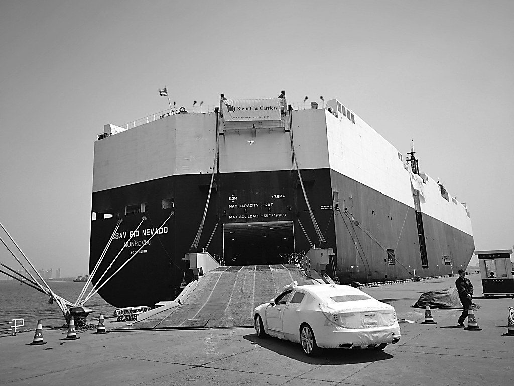 24日,大庆沃尔沃汽车制造有限公司生产的400余辆全新S90长轴距版豪华轿车在天津港环球滚装码头装船启运,预计5月20日抵达目的地美国怀尼米港。4月12日,这批豪车从大庆出发,拉开“大庆造”高端豪车首次出口全球市场的序幕。 孟令威本报记者李飞摄