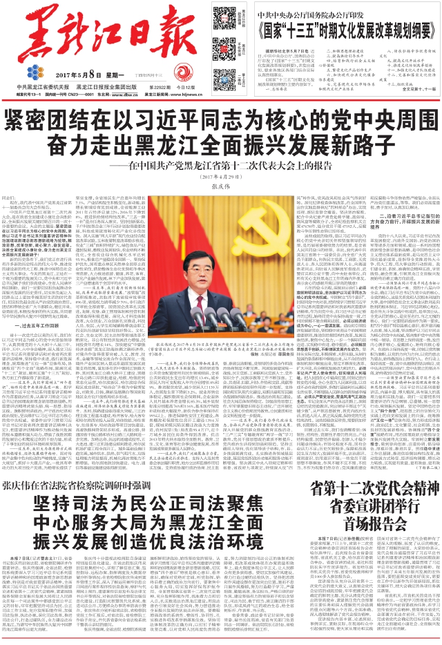 紧密团结在以习近平同志为核心的党中央周围奋力走出黑龙江全面振兴发展新路子