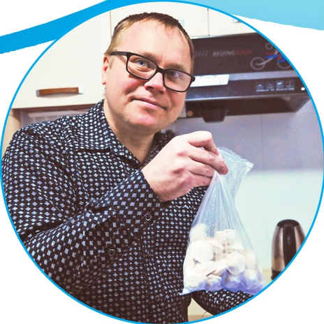 安德烈自豪地展示自己包的水饺。本报记者蒋国红摄