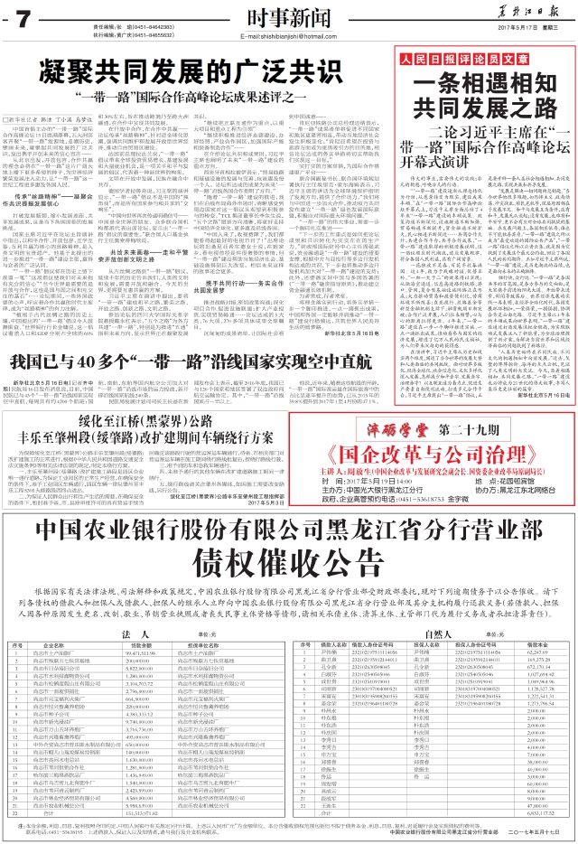 中国农业银行股份有限公司黑龙江省分行营业部债权催收公告