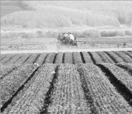 建设农场对播种完的玉米地号统一组织大型自走式喷药机进行标准化苗前封闭灭草作业,在不耽误农作物生长的情况下控制杂草滋生、防病、防虫,能有效促进作物生长。 许颖献本报记者刘楠摄