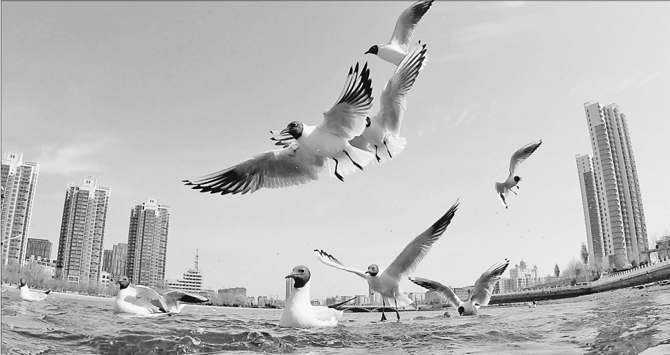 图为齐齐哈尔嫩江公园水面上翩跹起舞的红嘴鸥。 王勇刚本报记者郭俊峰摄