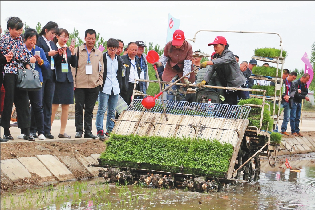 5月21日,中国水稻研究所水稻轻型无土基质育秧技术现场会在宝清县召开。在宝清县现代农业科技示范园区和青原镇永红村示范田,与会人员观摩了轻型无土基质育秧秧苗素质、机插现场,以及秧苗机插后的长势。该基质选取农作物秸秆为主要原料,有效地解决了水稻育秧营养土取土难和取土后土壤层植被环境破坏,以及焚烧秸秆污染环境等问题。图为观摩现场。 马淑芬本报记者高明摄