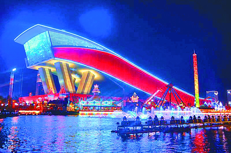 为庆祝端午节的到来,29日20时,哈尔滨万达城举行全业态亮灯仪式,吸引近2万名中外游客到场。仪式现场,游客畅览“世界超大红钢琴”娱雪乐园在夜色中的耀目光彩,并在室外主题乐园游览。当天,除了迷人夜景,哈尔滨万达城还通过美食电音秀等丰富的端午主题活动吸引人气。据悉,哈尔滨万达城将于6月30日盛大开业。图为万达城亮灯现场。 王迪本报记者李爱民摄