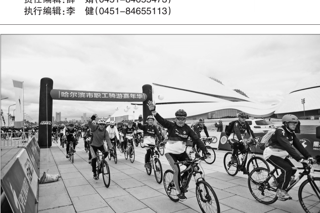 本报讯(姚鹏记者李爱民)10日, 2017哈尔滨国际马拉松运动季——松北沿江湿地自行车系列活动之哈尔滨职工骑游嘉年华在哈尔滨大剧院(松北区江湾路)举行。 据了解,2017哈尔滨国际马拉松运动季——松北沿江湿地自行车系列活动由省体育局、省总工会、哈尔滨市政府共同主办,将历时两个月,共十场赛事。而由哈市总工会主办的职工骑游嘉年华是该项系列活动之一,起终点均为哈尔滨大剧院,途经滨洲铁路桥至北京路口折返,全程35公里。旨在宣传“迷人的哈尔滨之夏”,推介松北湿地景观,倡导低碳环保、绿色出行,促进旅游经济快速发展。活动得到全市各级工会组织大力支持和广大职工自行车运动爱好者的积极参与,共有35个单位650名运动员报名参加。 图为哈尔滨市职工骑游嘉年华现场。 本报记者高明摄