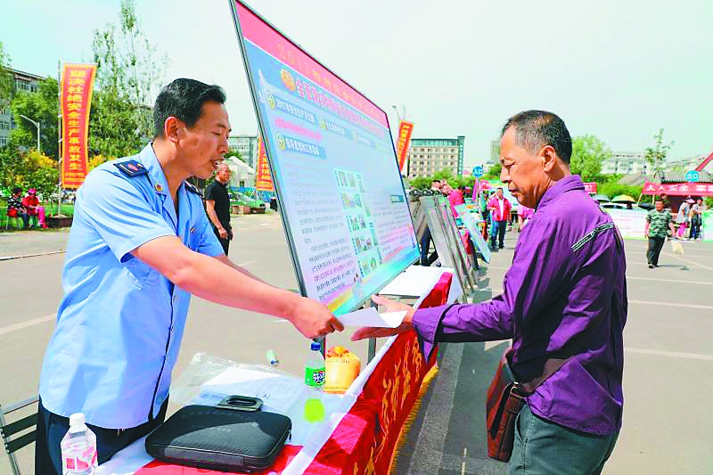 近日,道外区在道台府古玩城组织开展第16个“安全生产月”咨询日宣传活动,来自道外区安监局、市场监管局等部门的100多名工作人员采用LED显示屏、宣传板、横幅标语、道路交通安全警示牌、咨询台等多种形式进行宣传。宣传的主要内容有企业生产安全、危险化学品安全管理、典型事故案例及分析、道路交通安全、消防安全、职业健康等。活动现场各咨询台前的群众络绎不绝,领取宣传资料,并向工作人员询问安全生产与消防、交通安全等相关问题。现场还进行了消防云梯救援、应急救护等演练活动。 图为活动现场。 李斌本报记者刘艳摄