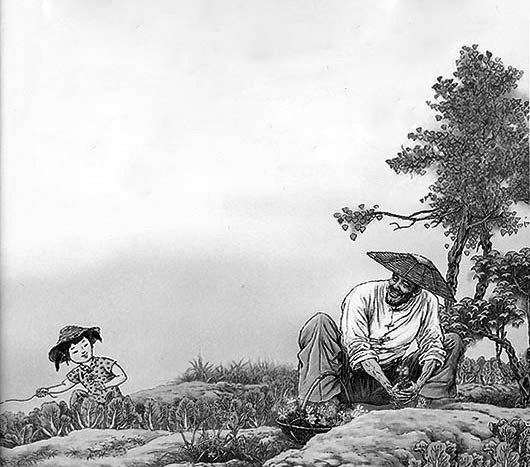 刘晓鹏 穿越50年时光的隧道,依稀看见老家三间泥草房后面那一大片菜园子,四周栽着高高的柳条树,挡着鸡鸭鹅狗。 我们家的后园子,更是爷爷的后园子,种园子管园子,种什么不种什么都是爷爷说了算,别人都插不上手,园子里的活儿几乎他一个人干。我刚懂事的时候,爷爷年纪大了已经不参加生产队的集体劳动了,春夏秋三个季节都忙碌在后园子里。 春分地皮干。后园子里的积雪慢慢化没了,爷爷开始收拾后园子,用木头耙子搂起干巴一秋一冬的黄瓜秧、茄子秧,堆在柴禾垛底下留着烧炕。一冬天过去,柳条障子被猪狗钻出几个豁子,需要砍点树枝子补一补,再搓几根草绳子绑结实。等到园子里的土化到一铁锹深,开始翻园子了。爷爷领着我的哥哥姐姐们,用筒锹和四股扠挖,把土翻过来,把土坷垃打碎,把土整平整细,再起垄。起垄最好是用犁杖,那时犁杖都是生产队的,个人家用是不可以的,再说园子和大地比起来还是小,牛马到地头抹弯也费劲,起垄只好用镐来钩。爷爷那时就扔下五十奔六十了,庄稼活儿还是那么利落,铲铲割割、扶犁点种、铺场码垛,样样都行。一把备地的铁片镐,把一百多米长的垄台起得标标溜直,新翻动的黑土散发着春天的气息。 初夏的雨后,一天比一天热了,爷爷撒下的菜籽在垄台上顶出嫩芽,黄瓜、柿子、茄子、生菜、菠菜等,有了丝丝的绿意。一场小雨过后,开始间苗了,间下多余的苗要栽到留出来的空垄上,也叫倒垄。间苗倒垄一般都在雨后进行,秧苗根部带点湿土容易成活。如果是晴天,就要在新垄台上刨坑坐水,不然太阳一晒就蔫巴了。都是栽秧子,挪苗的时机也不一样,爷爷说:“茄子栽花,黄烟栽荚。”就是说茄子挪苗大一点,开花都不怕,黄烟苗小一点好活,刚出土两片小叶,也可以说刚冒出个荚,就可以间苗倒垄。爷爷培育的秧苗又壮实又易成活,自己家用不了,就送给左邻右舍。夏天的雨后,正是栽秧子的好时机,我家后园子一下子热闹起来了,爷爷也忙个不停,东院张大娘,西院李二嫂,都来要秧苗。爷爷一般不让她们自己进地里上手薅,怕人多把地都踩硬了,就自己早早准备好,把间下来的一小捆一小捆的茄子苗、辣椒苗、柿子苗装进从障子外伸过来的腰筐、土篮子。 每当我和弟弟看到黄瓜开始爬蔓,嫩绿的叶子下开着一朵朵小黄花,我们就心里痒痒的,仿佛闻到了刚下来的新黄瓜那股香味。听爷爷说,黄瓜顶着花长,开花就结瓜,只是很小。开花不结瓜的叫“谎花”。难怪屯子人对说假话的人说:“你净开谎花。”别人家的园子里,黄瓜一开始爬蔓就要用秫秸支起黄瓜架,让黄瓜秧往上爬。可我爷爷从来也不这么做,就是让黄瓜秧在地垄沟里随便爬,他说他的道理:“架起来的黄瓜秧不耐旱,死的早。” 太阳还没有升起,我早早起来就趴在地垄沟里,当我看到金灿灿的黄瓜花滴着晶莹的露珠,闻着花蕊里散发着一股清香,更是盼着花根上的小黄瓜快点长大。几天过去,黄瓜慢慢长大了,爷爷要做两件事,一个是把最大的几个黄瓜根上拴上红布条,嘴里还叨咕着:“不能好吃不留籽。”再就是拿来一个酒瓶子,把小一点的黄瓜伸进瓶子口,让小黄瓜在瓶子里慢慢长大后摘下来,再泡上高粱酒,喝起来有一股清香味儿,还能治胖肿病。开始第一茬黄瓜下来,爷爷看着不让我们随便摘,等大批下来就不管了。第一顿的黄瓜菜吃起来特别香,做法也很简单,就是黄瓜丝加干豆腐丝,切点葱花,黄豆大酱一拌,就着小米饭大口嚼起来。爷爷摆上小炕桌,把锡酒壶满上,盘腿大坐在炕上,就着黄瓜菜,顶多再摊个鸡蛋,高高兴兴地举起瓷酒盅喝上二两。 后园子的两棵大杏树是最好的一道风景,春天燕子盘旋,夏天蝴蝶翩跹,秋天麻雀歌唱。据说这两棵杏树是爷爷从东山里移来,亲手把它栽活的。究竟多少年了,我也不知道,当我记事时,这两棵杏树就差不多有房子高了,大树杈子上可以站住人了。每当谷雨到来,柳条枝上一结出毛毛狗,杏树上紫红色的花骨朵也炸蕾开放,在后院子里干活儿的爷爷就会自言自语地说:“杏花开了就该种大田了。” 花褪残红青杏小。杏花落后,绿叶遮掩不住的小青杏,压在弯弯的枝上。有时我趁着爷爷不在园子里,偷偷地揪下一颗放在嘴里嚼着,又苦又涩又酸,一张嘴又吐了出来。那时我就是盼着树上的青杏早点熟。在我的等待中,终于入伏了,屯子外的小麦梢泛黄,后园子的杏也开始由青变黄,朝太阳的一半是紫红色的,累累果实在枝头摇曳,像一嘟噜一嘟噜红黄相间的玛瑙。小麦不受三伏气。二伏里大人们开始割麦子,爷爷领我们开始摘杏吃。树太高了,我够不着,就爬到树杈上摇动树枝,熟透的杏子噼里啪啦掉到树下,我跳下来捡。那几天,我出去玩,兜里总是揣得鼓鼓囊囊,把杏分给我的玩伴们。 我13岁那年夏天,爷爷离开了我们。一挂马车载着一口绛红色的棺材,牵着我们的哭声缓缓驶出村口。当我50年后再回到老家,在老屋前后盘桓良久,看到后园子早已盖起了别人家的房子,园子四周的柳条树不见了,两棵大杏树我只能凭记忆判断曾在什么位置。此刻我才知道,再回到爷爷的后园子,只能是在梦里。