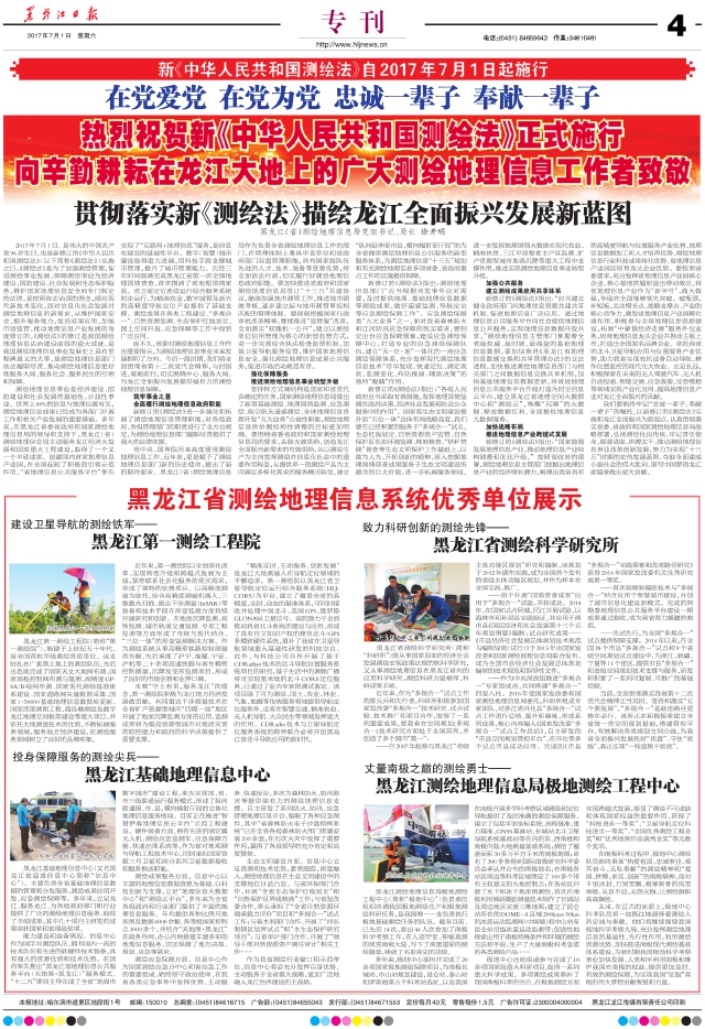 热烈祝贺新《中华人民共和国测绘法》正式施行向辛勤耕耘在龙江大地上的广大测绘地理信息工作者致敬