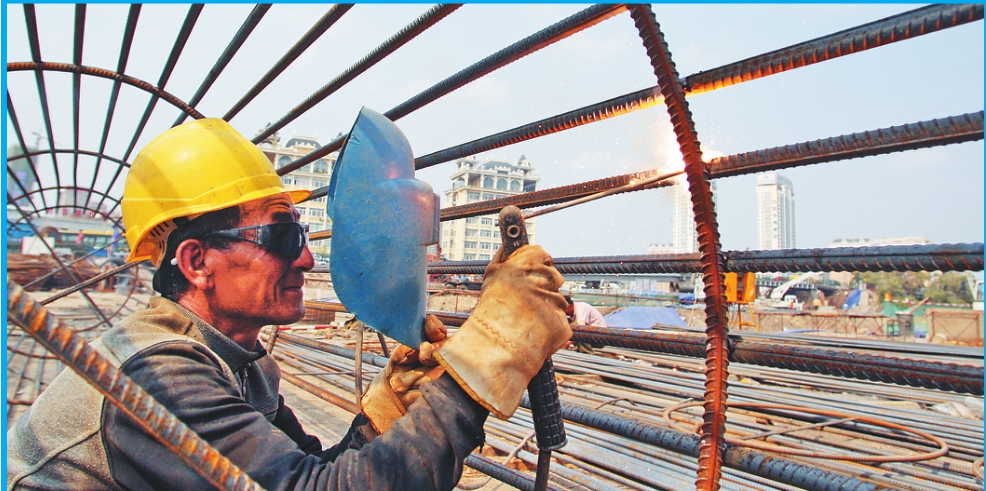 近日,哈尔滨市最高气温达到了32摄氏度。烈日炎炎下,城市建设者们依然坚守在工作岗位上,他们用辛勤和汗水浇筑美好未来。图为道里区霁虹街附近路桥建设现场,工人冒着高温进行焊接工作。 本报记者苏强摄