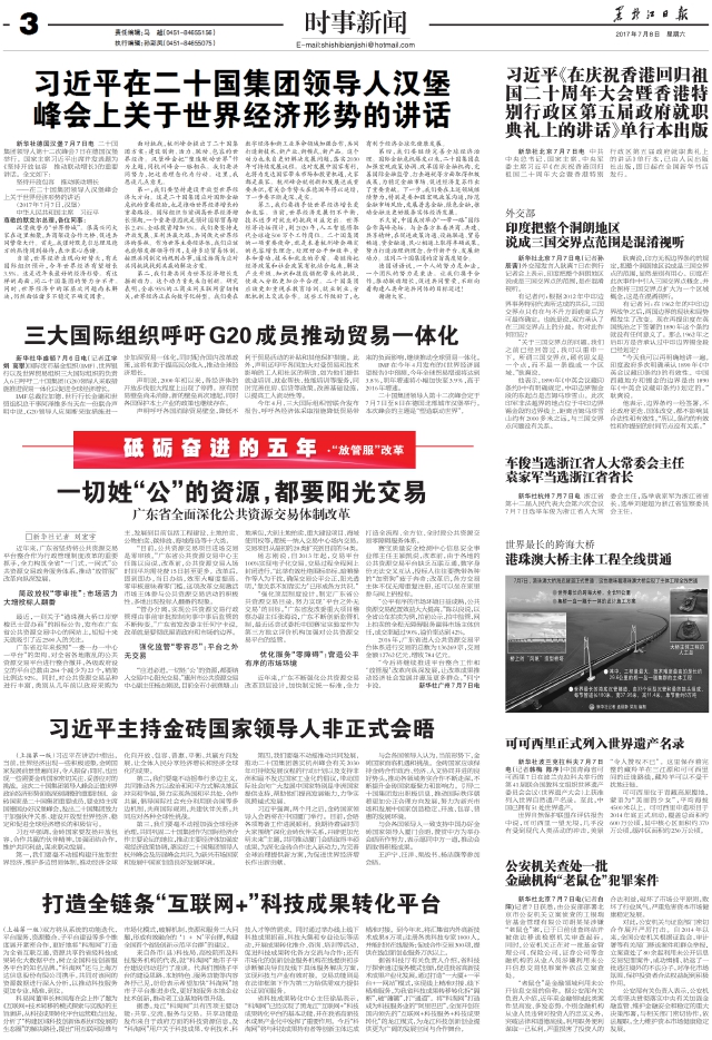 习近平在二十国集团领导人汉堡峰会上关于世界经济形势的讲话