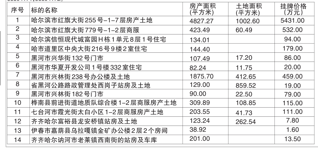 黑龙江联合产权交易所接受委托对黑龙江省非办公类招商资产进行转让,有意者请于2017年8月8日15:00前携带有效证件到交易所办理登记手续,详情请登录:www.huaee.net。地址:哈尔滨市松北区世茂大道66号。电话:0451-58894170,58894171,58894172。