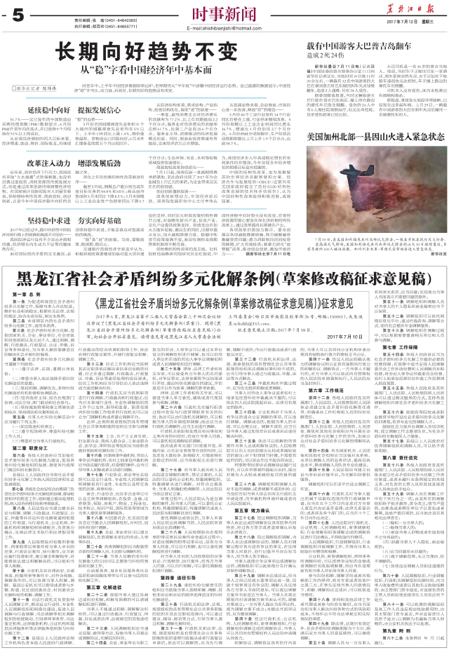 黑龙江省社会矛盾纠纷多元化解条例(草案修改稿征求意见稿)