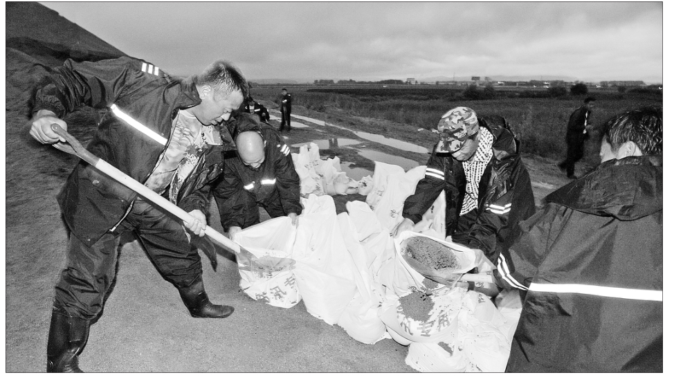 近日我省东部地区连续降雨,海林市组织人员对低洼险要地段、塘坝进行重点看守防护,应对随时可能发生的灾情。图为民兵防汛应急分队正在对一处塘坝加固。 张春祥本报记者邵国良摄