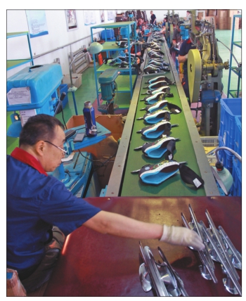 自5月以来,黑龙冰刀制造股份有限公司订单猛增,北京、新疆和俄罗斯、印度、美国等地订单纷至沓来,冰球、护具、雪板等冰雪器材在市场走俏,企业工人加班加点生产产品。 闫美艳本报记者姚建平摄