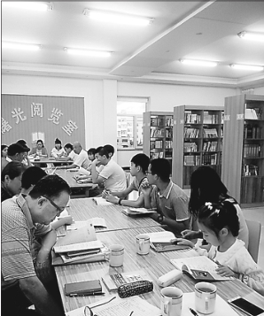 曙光农场关工委与社区联合组织农场中小学生到农场阅览室集中开展“好书伴我过假期”活动。图为“好书伴我过假期”读书现场。