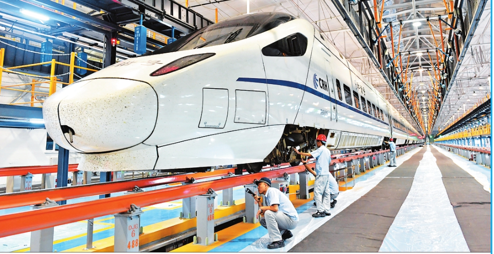 近日,齐齐哈尔动车运用所地勤机械师在动车组检查库内,为暑运高峰期刚刚返回的齐齐哈尔至北京D26次重联动车组认真“体检”。据了解,该动车所是我国最北动车所,担负着齐齐哈尔至北京、齐齐哈尔至珲春以及齐齐哈尔至哈尔滨(西)等车次动车组的应急故障处理、吸污、停留及看车作业。全所42名干部职工冒高温战酷暑,星夜检修,为旅客暑运出行安全提供保障。 宋燕军于国涛本报记者邵国良摄