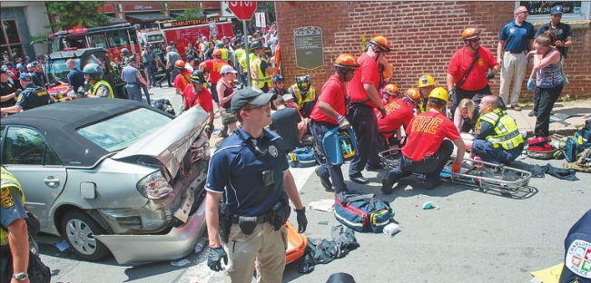 8月12日,在美国弗吉尼亚州夏洛茨维尔,救援人员对伤者进行急救。 美国弗吉尼亚州夏洛茨维尔12日大规模集会期间发生暴力事件,导致至少1人死亡、34人受伤。美国总统特朗普当天对暴力表示谴责。他在出席一个活动时说:“多方都表现出令人震惊的仇恨、偏见和暴力,我们以最强烈的言辞谴责这些行为。 新华社发