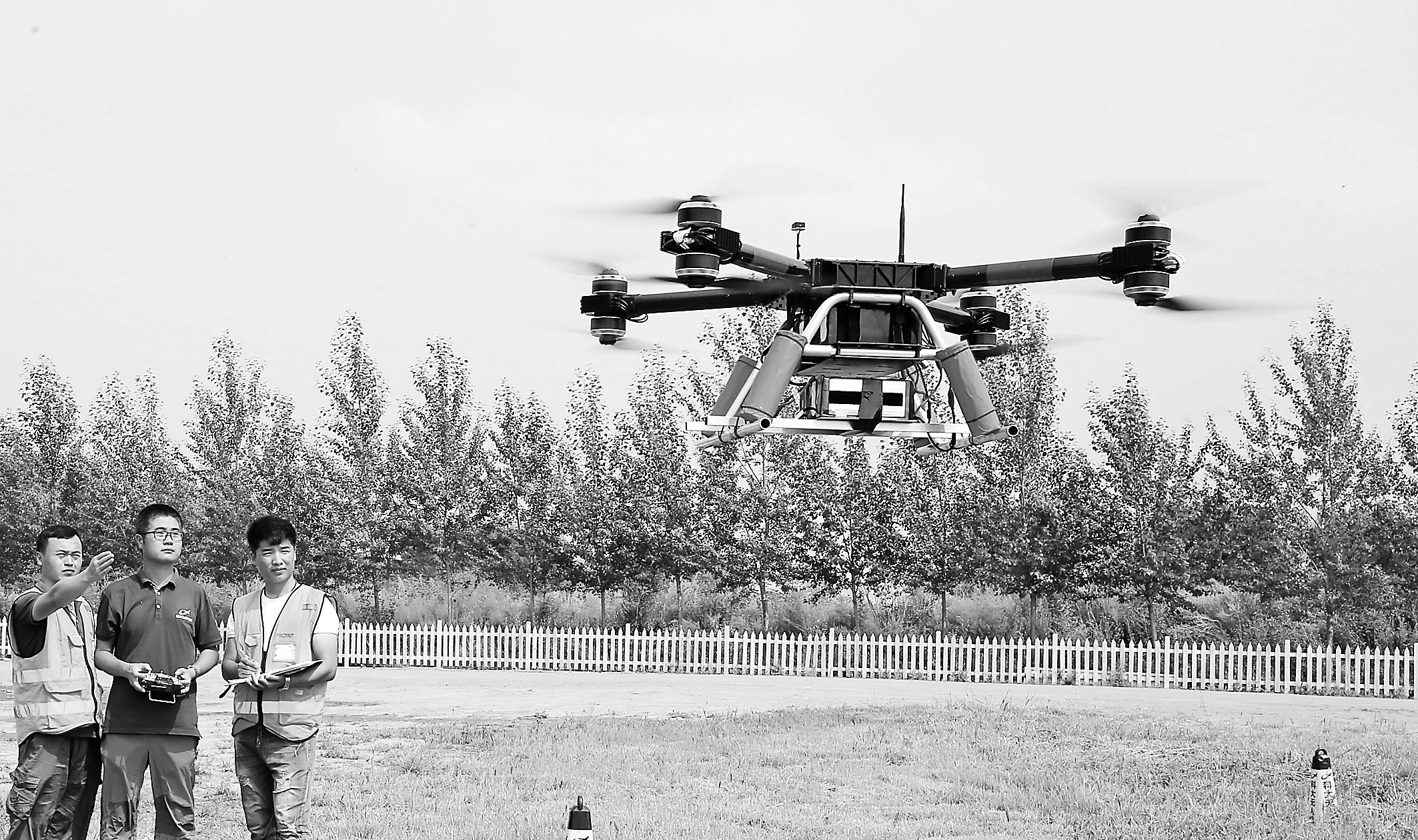 日前,黑龙江科大格羿创新科技有限公司靠自主研发的碳纤维复合材料结构件、设计机臂折叠机构、外观覆盖件、中空碳纤螺旋桨等,15名师生用15个月的时间研发出了起飞重量56公斤的电动多旋翼无人机。该机可用于灭火可挂载灭火弹、水上空投救生弹、电力架线、遥感探矿等设备,是目前国内起飞重量最大的电动多旋翼无人机。图为研制人员对无人机系统进行调试。 本报记者邱成摄