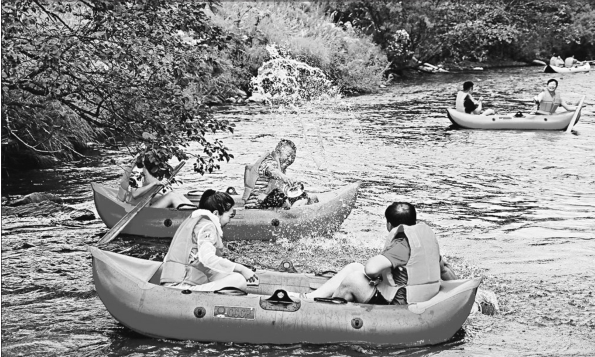 佳木斯市创新旅游产品营销,推出夏季汤原大亮子河国家森林公园、富锦国家湿地公园、郊区大来岗达勒花海等7条精品线路。上半年接待国内外游客235万人次,同比增长4.8%,实现旅游总收入9.7亿元,同比增长7.1%。 图为游人在汤原县大亮子河漂流的同时欣赏森林美景。 丁兆勇焦勇本报记者邱成摄