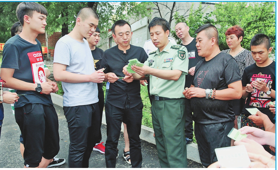近期,双鸭山军分区同步开展了以“无盲区、无禁区、无特区”为主题的“三无”活动,还聘请了257名廉洁征兵宣传员,确保征兵工作全程公开透明,杜绝违规违纪问题发生。图为军分区征兵负责人向应征青年及家长发放廉洁征兵信封、廉洁征兵监督卡。 刘盛国郭海冰摄