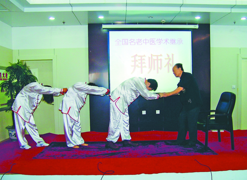 学生为孙申田教授行全国名老中医学术继承拜师礼。