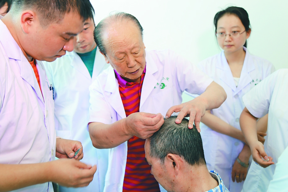 文/刘效姬 2017年6月29日,人力资源社会保障部、国家卫生计生委和国家中医药管理局在北京联合举办国医大师、全国名中医表彰大会,黑龙江中医药大学附属第二医院孙申田教授被授予首届“全国名中医”称号。此前,他于1994年被黑龙江省卫生厅、省中医药管理局评为首届“黑龙江省名中医”。除了名中医的称号,他在民间还有一个患者口口相传的响亮名号——“孙一针”。行医五十余载,他创新头针疗法,善用独特“孙氏针法”、“孙氏腹针疗法”治疗各科疾病,用银针治愈患者无数;从事中医教育五十余载,他致力于学科建设,培育优秀中医人才无数。他以甘于奉献、救死扶伤的实际行动谱写了大医精诚、大爱无疆的感人篇章,以一生坚定的职业理想和职业自信诠释了一代中医人执着中医梦想,弘扬国医精粹的决心与自豪。 结缘中医发愿解民疾苦 1939年3月,孙申田教授出生在黑龙江省呼兰县。16岁时,因两膝关节红肿入绥化铁路医院住院治疗,月余病情未见好转,随即回到呼兰县求知名中医进行诊治,中药治疗半月后得以痊愈。这次经历让他对中医药产生了浓厚的兴趣,也带给了他巨大的影响,至此立下鸿鹄之志,要学习中医救死扶伤。 1956年,孙申田如愿考取牡丹江卫生学校中医专业。1959年,黑龙江中医学院正式成立,孙申田又以优异的成绩成为第一批在校中医学员。很多学员觉得学习中医过程枯燥乏味,孙申田却一头扎进中医经典觉得精髓深厚,需反复揣摩研读,每次往复亦有收获,乐趣无穷。 1963年是对孙申田教授从事针灸专业影响极为重要的一年,他在天津中医学院研修针灸临床,当时天津中医学院是全国中医院校最早把针灸科独立出来并设独立针灸门诊的院校。在研修期间,孙申田有幸师从著名针灸前辈于伯泉、曹一鸣研习针灸经络理论及针刺手法。于伯泉老师对祖国医学造诣颇深,一生博览群书,尤偏爱《内经》、《针灸大成》,常一卷在手,细心玩味,孜孜以求,其条文和歌赋可脱口而出,“不做徒手门户的粗工和书本的奴隶”,于伯泉老师放在口边告诫学生的话语时至今日仍然给了孙申田很深的影响,所以他每读经典时即将各家所长反复细心实践于临床,并总结出自己的见解,既博采众长又独树一帜。 如今的孙申田教授,已经成为针灸学科的学术前沿人物,学术造诣深邃,临床经验丰富,在科研成就上亦硕果累累,为我国中医药事业的发展尤其是针灸技术的继承、创新和发展做出了卓越贡献。他结合北方地区多发脑病特点,组建了黑龙江中医药大学第一个针灸神经内科病房,系统地把中医、中药、针灸疗法引入神经内科学领域,创建了针灸学新的临床、教学及科研模式;从医至今,其发表学术论文百余篇,出版专著十余部,获省部级、厅局级奖项20余项。 开放包容创新思维“三结合” “师古而不泥古”是孙申田教授始终坚持的学术观点,他很早就开始提倡以开放包容的姿态促进中医药事业走向国际,与国际医学接轨相互促进发展。他曾多次访问美国、加拿大、日本等国家推广中医药特色优势和医疗技术。1998年,为表彰孙申田教授在普及和推广中医药在美国发展的卓越贡献,美国德克萨斯州首府奥斯汀市市长授予孙申田教授荣誉市民称号,并赠予了城市金钥匙。 从医五十余载,孙申田教授的“三结合”学术思想培养了几批中医药优秀人才,也治愈了几十万患者的病痛。他提倡“重诊断、精辨证,中西结合”,在临床实践中,他认为中西医两种诊断各有千秋,中医的发展势必吸收现代自然科学之所长。他认为现代医学的诊断方法和先进的检查手段,有助于明确疾病的诊断,中医药从中介入恰恰又突显出中医辨证施治之精髓,遂主张用现代自然科学方法,创新形成具有中医特色的新医之路;他提倡“精针灸、熟方药,针药结合”。他认为“针灸中药、各有所宜”。一名合格的针灸医师必须精熟针灸学的各种理论和方法,灵活运用经络辨证等手段,进行正确的选穴配方与手法操作,还应熟练掌握中医辨证遣方用药。当针则针、当药则药、当合则合,以达到最佳的治疗效果;他提倡“继传统、求创新,古今结合”。应虚心学习传统中医理论和广泛汲取前人的宝贵经验,反复临床与实践的基础上,不断地进行理论和实践的探索和创新。从而,运用现代自然科学的理论和方法,使传统针灸学研究焕发出崭新的生命力。 临床中,孙申田教授创新了头针疗法,善用独特“孙氏针法”、“孙氏腹针疗法”治疗各科疾病,屡起沉疴;他重视经络辨证,继承与丰富传统针灸取穴方法,效如桴鼓。他通过“经颅重复针刺运动诱发电位研究”等一系列研究成果,从实践与理论研究证实了大脑机能定位与头皮对应关系选穴正确性,强调手法与疗效重要性,扩大了头针疗法治疗范围;首次证实了头穴对周围神经损伤治疗作用,他主持的针刺促进神经损伤修复研究,从周围神经损伤、脊髓、脑研究,客观证实了针刺促进神经损伤修复作用机制。孙申田教授取得的丰富的临床实践经验和科研成果解决了众多临床难题,为重症难症患者带来了福音。1994年被黑龙江省卫生厅、省中医药管理局评为首届“黑龙江省名中医”。 言传身教倾心育人传国粹 每天坚持出诊,已经成为孙申田教授习以为常的生活。8点刚到,身体略显不便的他就在学生的搀扶下来到自己的诊室。这时的患者已经挤满了诊室,可都井然有序、一