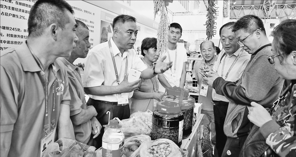 □本报记者宋晨曦 “这是我们自己村生产的红树莓制作的饮料!”23日,来自尚志市河东乡惠民村的村民正在绿博会上介绍他们的展品。 今年绿博会A区展馆内,一个特殊的展区吸引了很多人驻足,参展的展品种类多样,但大多数都没有华丽的包装。玻璃瓶装的红树莓饮料、没打包装的鸡蛋、散装的红菇娘、一串串鲜红色的辣椒,产品都带有浓郁的乡土气息。介绍产品的工作人员年龄普遍偏大,虽然穿着统一的服装,却都是农民扮相,谈吐朴实却热情周到。 这便是哈尔滨市发改委的帮扶点——尚志市河东乡惠民村的农产品展示,同时也是借助哈工大科软股份公司无偿为该扶贫点提供的绿博会参展平台,线下展示这个省级贫困村的农产品。 该村扶贫的驻村工作队队长高波在本次展会上忙得不亦乐乎,刚刚帮助村民售卖了一桶红树莓饮料并用手机支付的方式收款。 高波介绍,驻村扶贫是真正深入农村,了解农民及贫困户最真实情况的一项重要工作。一直以来,我们都在研究,该怎么扶贫? 2017年8月,哈市发改委针对惠民村提出七条产业发展意见和六项帮扶措施,与哈工大科软股份公司的互联网电子商务平台合作便是帮扶措施之一。 科软公司不仅为惠民村农产品免费提供展销平台,而且还将利用该公司的电商平台和品牌优势免费为惠农村的农产品进行推介。高波介绍,本次参展最主要目的是使农民增长见识、了解市场行情,借助外力形成持续性的脱贫致富模式。 惠民村党支部书记任延国说:“没想到平时不起眼的红菇娘啊、红树莓啊,还有卷烟叶子在这里都这么受欢迎,回去以后,村支部一定要和村民们分享成果、总结经验,并根据发展电商的需求,与驻村工作队共同商量惠民村的发展道路。” 图为哈尔滨市发改委驻村扶贫工作队队长高波(左三)在绿博会上推介惠民村的绿色农产品。 本报记者蒋国红摄