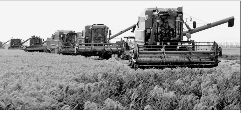 日前,位于界江黑龙江中游的绥滨县举办首届金秋开镰节。十台大型收割机开足马力驶进稻田地开始收割水稻,预计水田收割将于10月10日结束。近年来,绥滨县大力发展水稻种植,全县水田总面积目前已达125万亩,占基本农田的84%,占比位居全省之首。 柏常海本报记者王振良摄