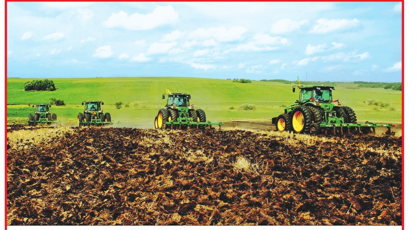 垦区建设农场第三管理区利用晴好天气,组织职工驾驶多台大马力机车对春小麦地茬进行联合深松整地作业,农业技术人员全程指导,抢前抓早,确保土地100%实现黑色越冬。
