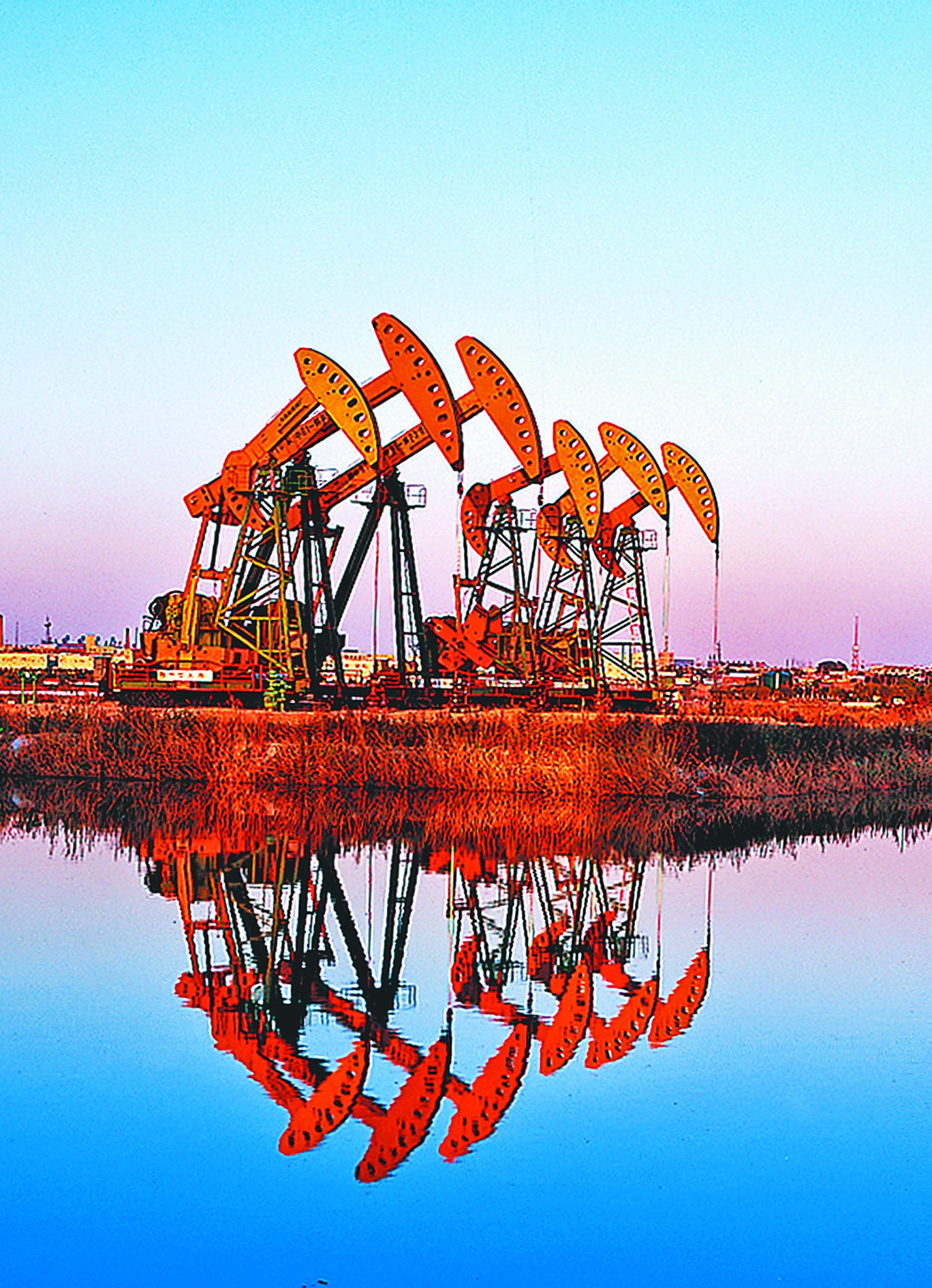 丛式井生产平台与蓝天碧水相得益彰。 赵永安摄