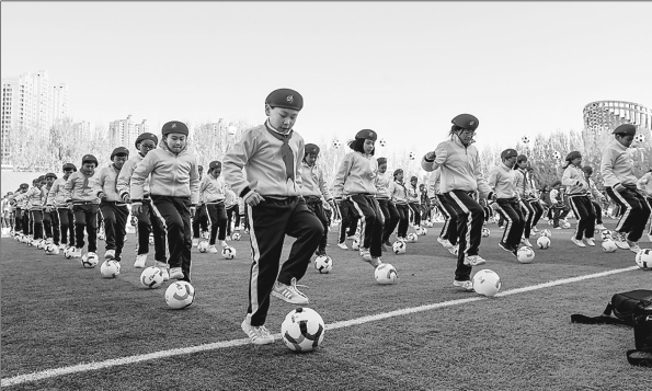 本报17日讯(记者刘莉)17日下午,哈尔滨市首届青少年校园足球文化节在哈尔滨市第三中学(群力)校区开幕。来自哈市九个区的国家级足球特色学校的学生为开幕式献上了开场鼓演奏、足球啦啦操表演、大型足球团体操。本届青少年校园足球文化节以“快乐足球,追逐梦想”为主题,围绕“足球文化”这一中心组织开展系列活动。 本届青少年校园足球文化节由哈尔滨市教育局、哈尔滨市体育局主办,中共哈尔滨市委对外宣传办公室、哈尔滨市政府新闻办公室协办,哈尔滨校园足球文化节组委会、北京优谷传奇文化传媒有限公司承办。 在开幕式现场,本届校园足球文化节的组委会为足球摄影大赛、足球征文大赛以及在最美校园足球教练员评选中获奖的个人颁发了荣誉证书。 图为开幕式上继红小学的学生表演足球操。 本报记者刘莉摄