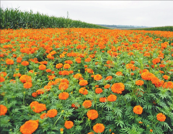 黑龙江中利生物科技有限公司今年在勃利县和农民签约种植万寿菊面积增至24000亩。 本报记者文天心摄