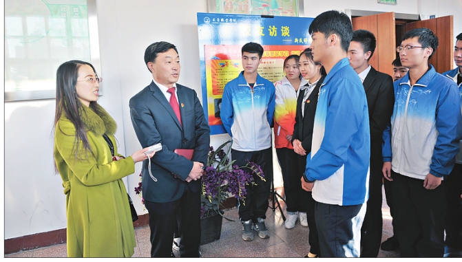图为李新民(左二)和大庆职业学院师生分享十九大精神学习体会。徐亮本报记者李飞摄