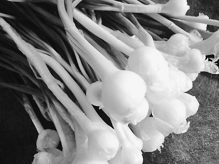 韩文莲了。还有的大脑瓜上,缀着几个小不点儿的,栖栖在一块儿。像小猴子们戏玩着老猴子。一个下晌能挖大半袋子,回来洗了,用盐腌了,能吃小半年。 有一回,我们七八个小伙伴在地里蹽窜着,剜得快的筐里才装了小半下儿。慢的筐底儿还没盖上,回家还不够塞牙缝的。一想起大人们高兴了,打一个鸡蛋酱,“小根蒜,蘸着酱,山珍海味赶不上”。或捡一块颤微微的大豆腐,拌上成段儿的大脑瓜,撒点盐,就着新出锅的小米饭一吃,哈喇子要流出来了。大壕帮草根子多,硬邦邦的不好挖。大地里东一棵西一棵的不成片,我们就往屯子西南的乱坟岗子去。过了头节地,再过一片小杨树林子。树地里零星的霜雪有的盖在落叶上,有的在土坷垃下做着梦。到了乱坟岗子,小的坟包有簸箕大平趴趴的。高的跟头顶齐平了,上面折弯的两根秫秸,插在黝黑的土上,挂个小红布条,风一吹一悠荡。伙伴们在坟茔间宽敞的空地找寻着。念叨着:“小根儿蒜,大脑瓜儿,有人吃,没人挖。”“哇,这有一堆!”胖丫叫着把柳条筐往旁边一扔,蹲在地上扒拉着一丛绿缨子。“呀,这儿还有。看,可真多啊!”有人又瞧见了一片,蹦着跳着喊着。“快挖,快挖,别戳着啦。”大伙一边挖一边大声说着:“大脑瓜,小细脖,光吃饭,不干活。”脆亮的声音,穿透飕飕的冷风,散落在草尖上,树杈上,老鸹窝,和麻雀喳喳喳的叫声里。胆小的老丫跟着挖了一会儿,后脑勺还是麻酥酥的,总觉着有一双深洞洞的眼睛,在看不见的地方盯着她呢。脚步不禁往坟地边上去了。毛愣愣地看一眼天上走动的云彩,“呼嗵”一声,一只脚踩空了,陷下去半截。“哎呀妈呀……”顿时,脸煞白了,冷汗出来了,捂着小筐撒腿就跑。跑着回头看到了自己的影子拼命追来,脚步倒腾得更快了。等跑到了路边,喘着粗气,一眼瞥见柳条筐里忽闪忽闪的绿缨子。又想起了瞎话里说的,大脑瓜儿的绿缨子是死人头发变的。“妈呀,绿毛鬼呀。”一下子把筐扔了,骨碌碌滚出去好远。几个胆大的就在后面哈哈乐着,喊着:“小根儿蒜,大脑瓜,有人吃,没人挖”。抹一把冻出的鼻涕泡,擦一把笑出的眼泪,肿着的小手,越发红红的、亮亮的。 当滴着水珠儿的大脑瓜端上桌,颈子俏白,叶子墨绿,头顶一撮银须子。我们就犟咕,是仙姑呢还是仙翁呢?早把绿毛鬼的事儿抛到天外去了。边等着开饭,边唱着“小根儿蒜,大脑瓜,又好吃,又好挖。”大人们说:“大脑瓜又白净又嫩绰,是个大露水珠。空心的叶子,是一串小露水珠串成的。蘸酱,炒着吃,爆锅调味儿,金贵着呢。”当上了岁数的说着“小根儿蒜,大脑瓜,奶奶吃,孙女挖。等明个儿再挖回来,揣点面,给你们烙饼吃。”我们香甜地吃着,心里又生出了明天的盼想。
