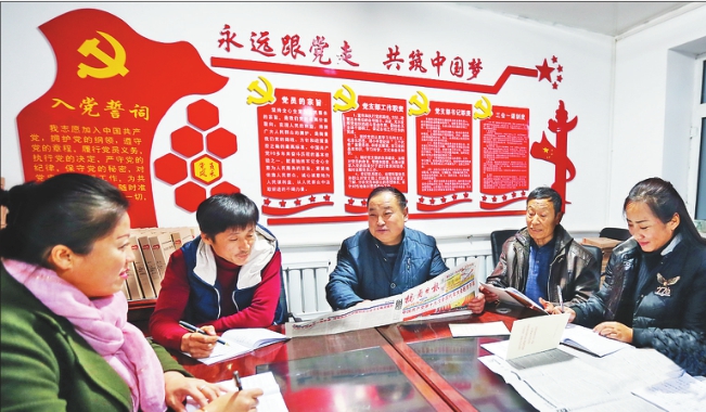 连日来,绥滨县绥滨镇敖来村党支部组织农民党员一起学习党的十九大报告,从中找寻与他们自身密切相关的“三农”等内容。柏常海本报记者邵国良摄