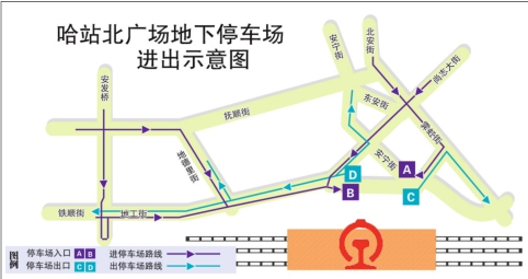 哈站北广场共设置地上、地下三处停车场,共有近800个停车泊位。