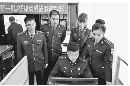 黑龙江省图书馆哈尔滨警备区流动分馆,战士们在查阅资料。