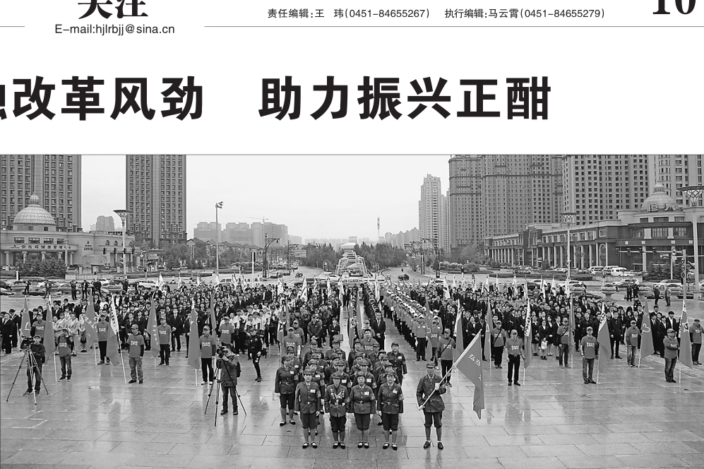 全省各地金融系统深入开展“重走抗联路普惠金融行”主题实践活动。图为金融志愿者方队。李闻摄